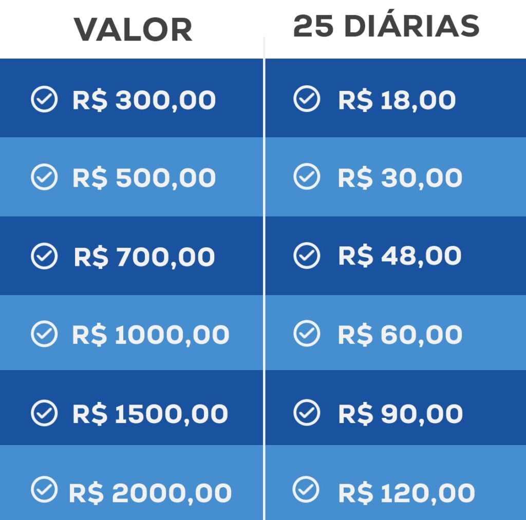 Pague em parcelas diárias
